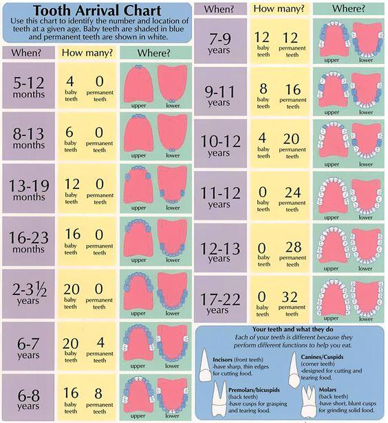 First, let’s look at figure 1 and understand our teeth eruption pattern. Please note that this only an average and should be used for reference, so do not worry if your child is early or late in terms of their teeth eruption. However, it is still wise to have annual x-rays taken to make sure there are no abnormalities or potential problems that may cause complications in the future. As their baby teeth come out, it may be normal if infants show signs such as higher body temperature, diarrhea, increased salivation, dehydration, skin eruptions, and gastrointestinal disturbances1, 2, 3. Under these signs, what may usually help alleviate the symptoms are increasing their fluid consumption, using teething rings that may help apply cold or pressure to the area, or, if necessary, even nonaspirin pain medication. This would help result in happier babies.